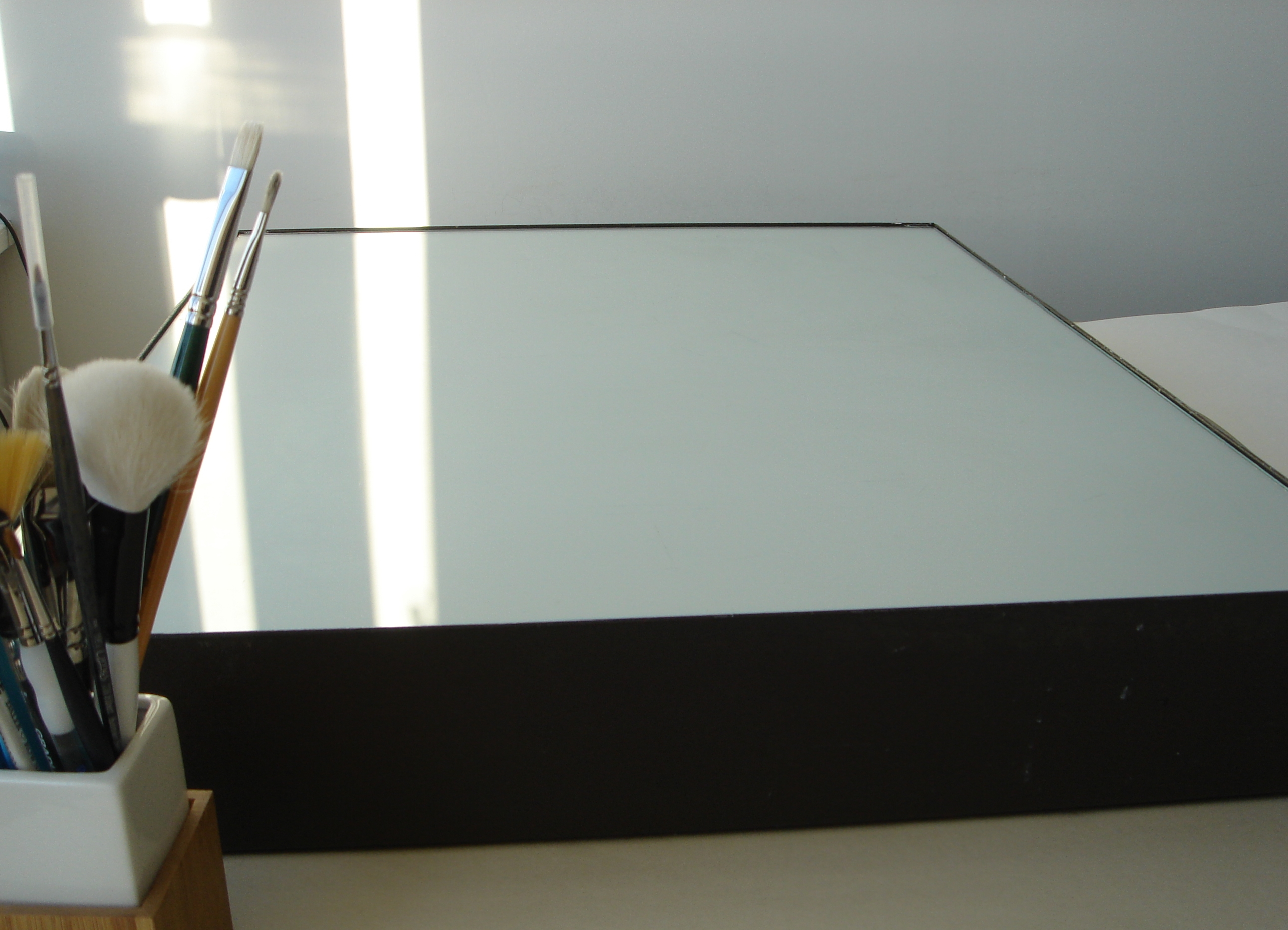 To be suitable for paper conservation light boxes need to meet several requirements such as having a firm glass surface to work with no flex; wet treatments need to be carried out in safety and daylight flourescent lights must create an even light with no hot spots which can be very damaging to the paper.