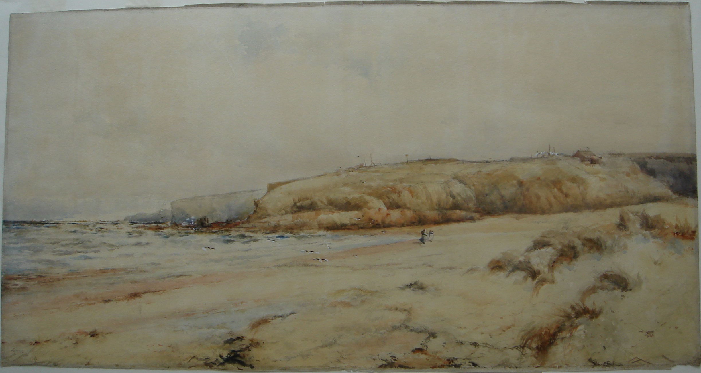 Horton watercolour unframed, (532mm (H) x 1016mm (W)), with visibly unaffected areas on far left and right.